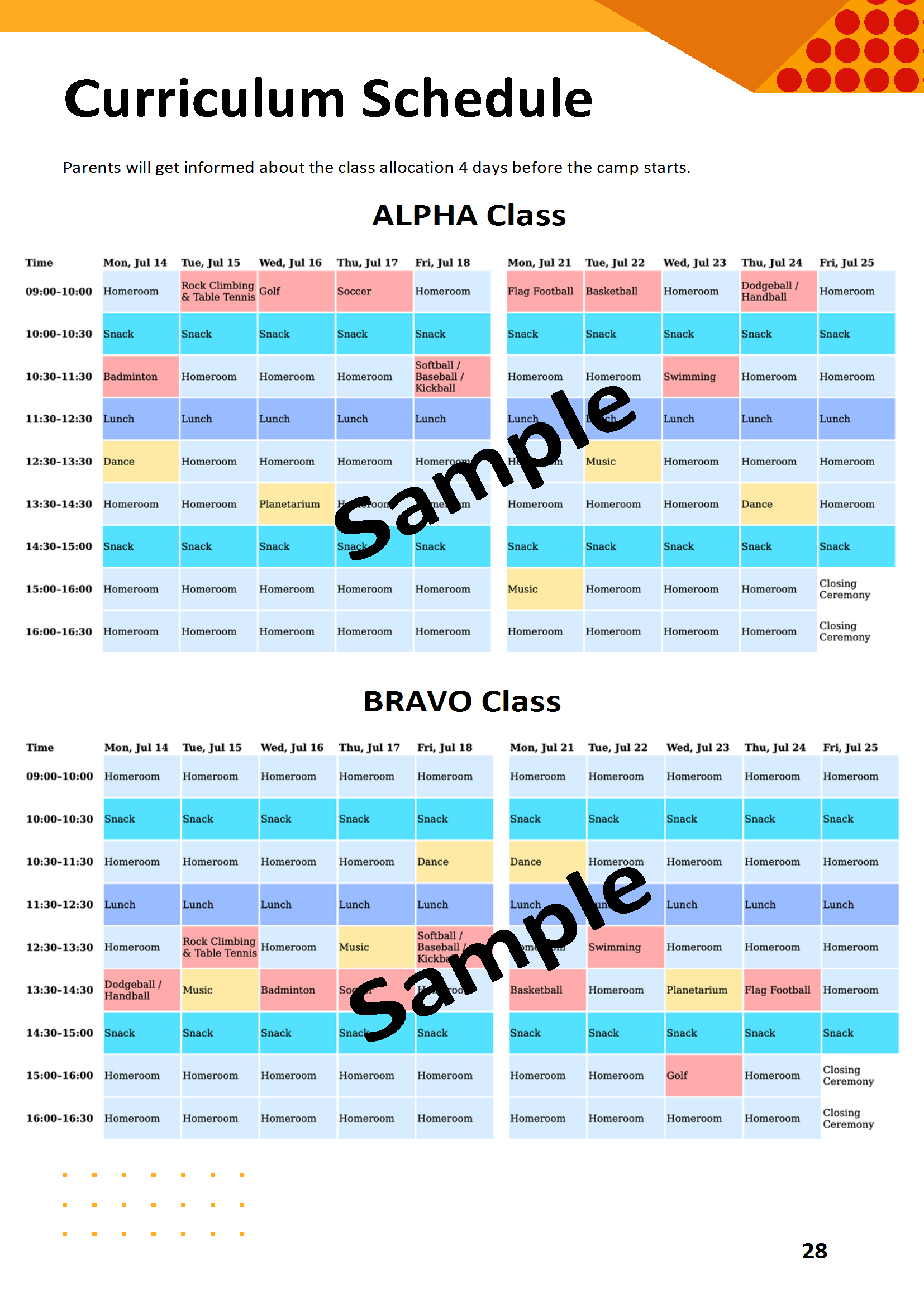 추후 안내. 오리엔테이션 중에는 캠프 기간 학교의 규칙, 규정, 일정 및 표준 절차에 대해 논의할 것입니다. 학교 규칙 위반시 캠프에서 강제 퇴소 당할 수 있습니다.