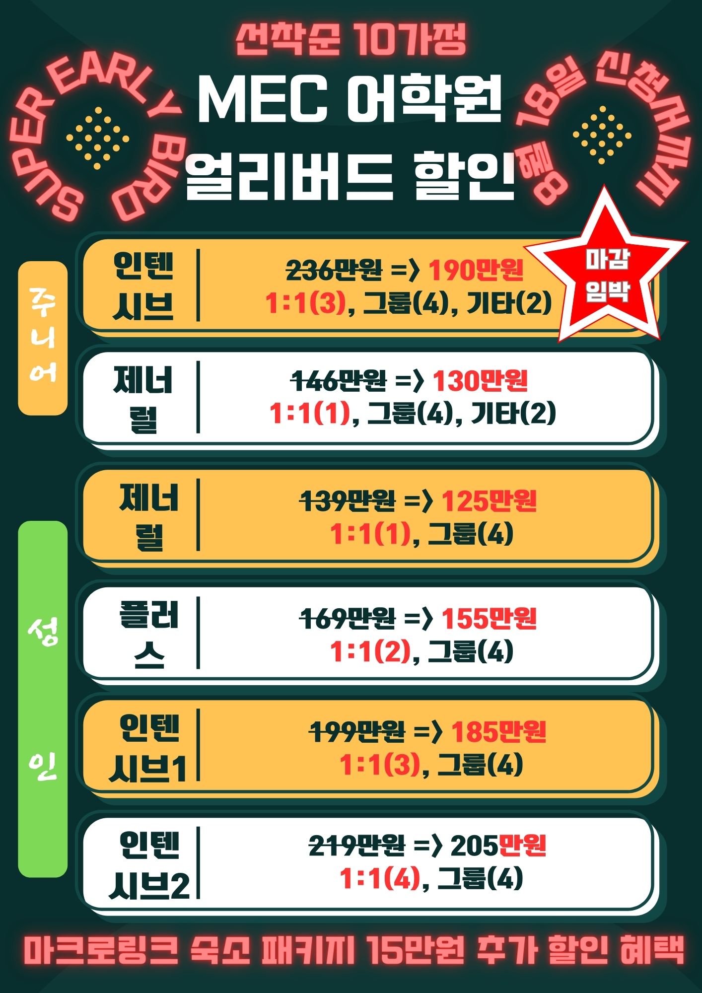 MEC어학원 인텐시브 코스 등록에 관한 중요한 업데이트를 알려드리고자 합니다.