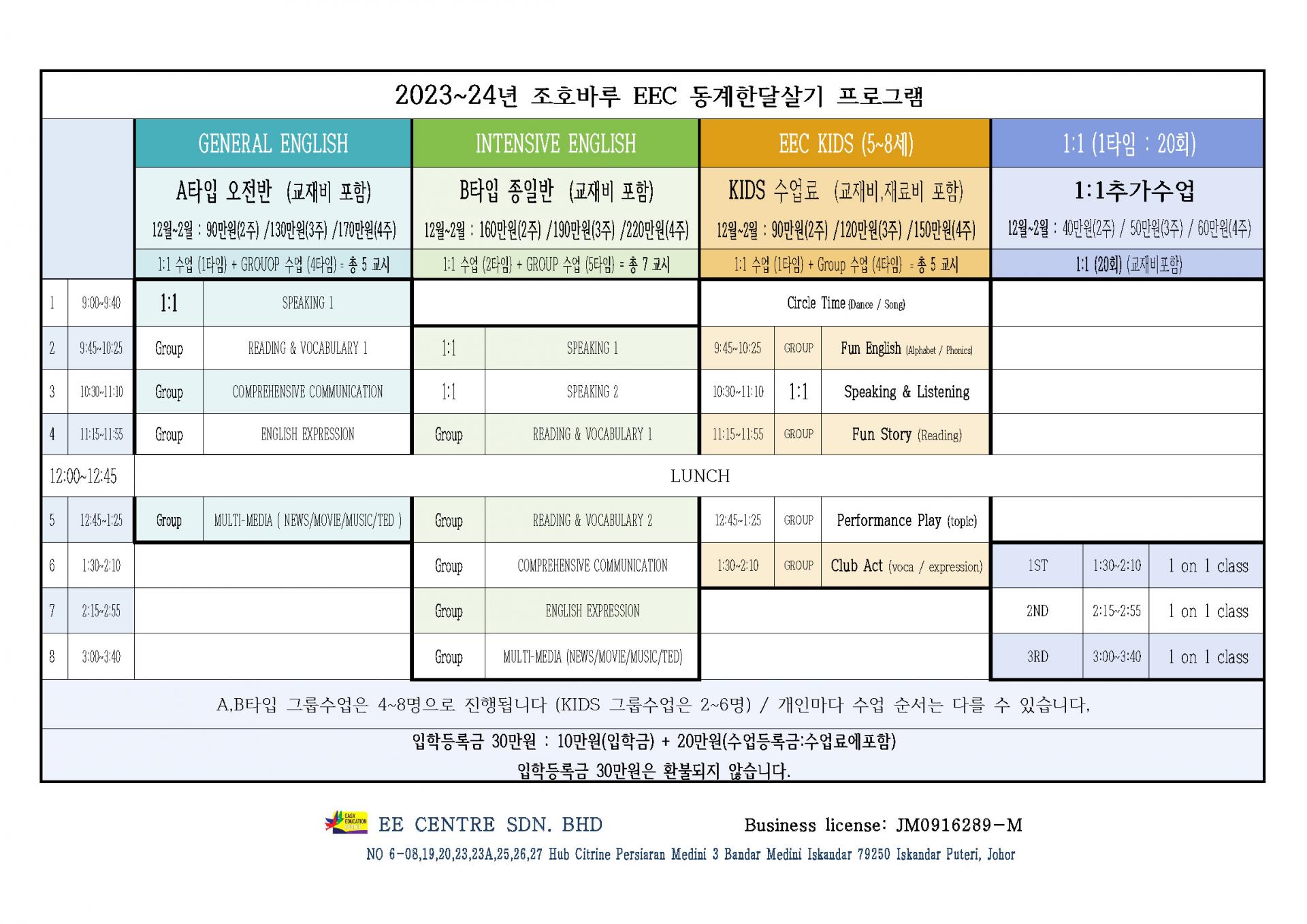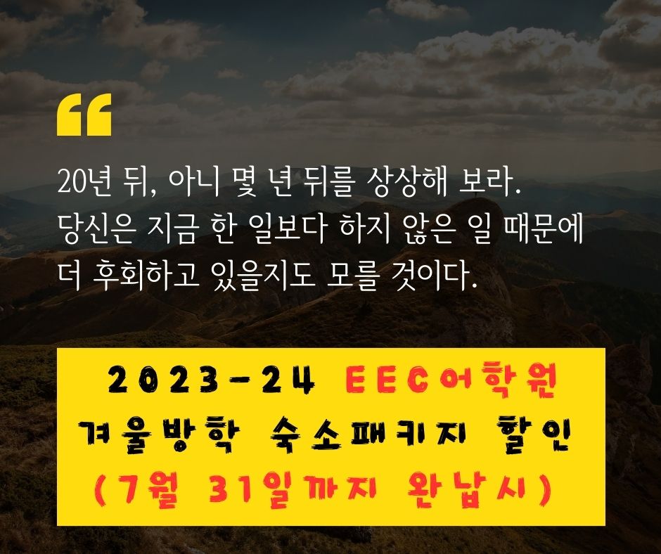 EEC 어학원 2023-24 동계 한달살기 수업프로그램과 숙소 및 신청서, 환불규정 업데이트된 자료입니다.
