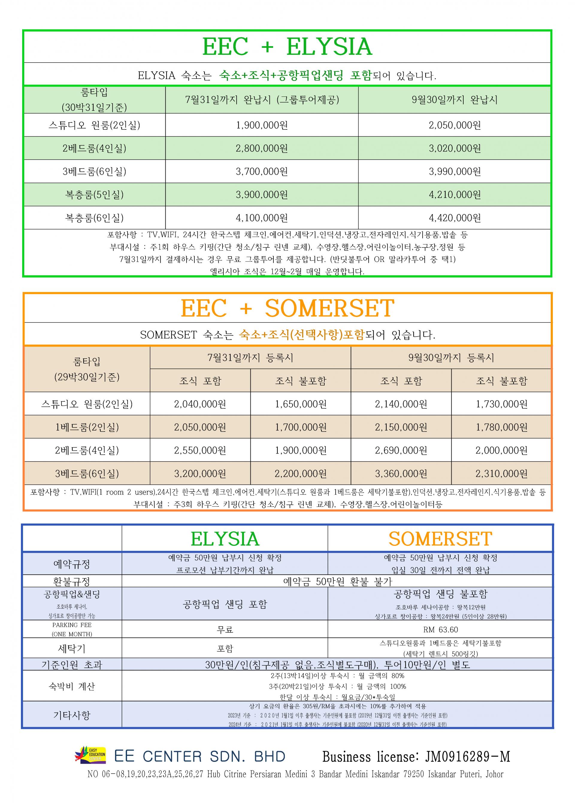 어학원+엘리시아 또는 어학원+써머셋 신청시 신청 시점에 따라서 패키지 할인 적용 비용이 변경되오니, 참고하시기 바랍니다.