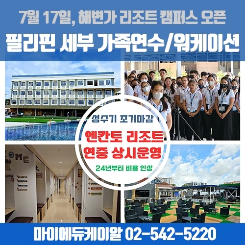 -엔칸토리조트 4주: 7월31일 시작 2인가족 600만원(식사+영어수업+빨래포함)
